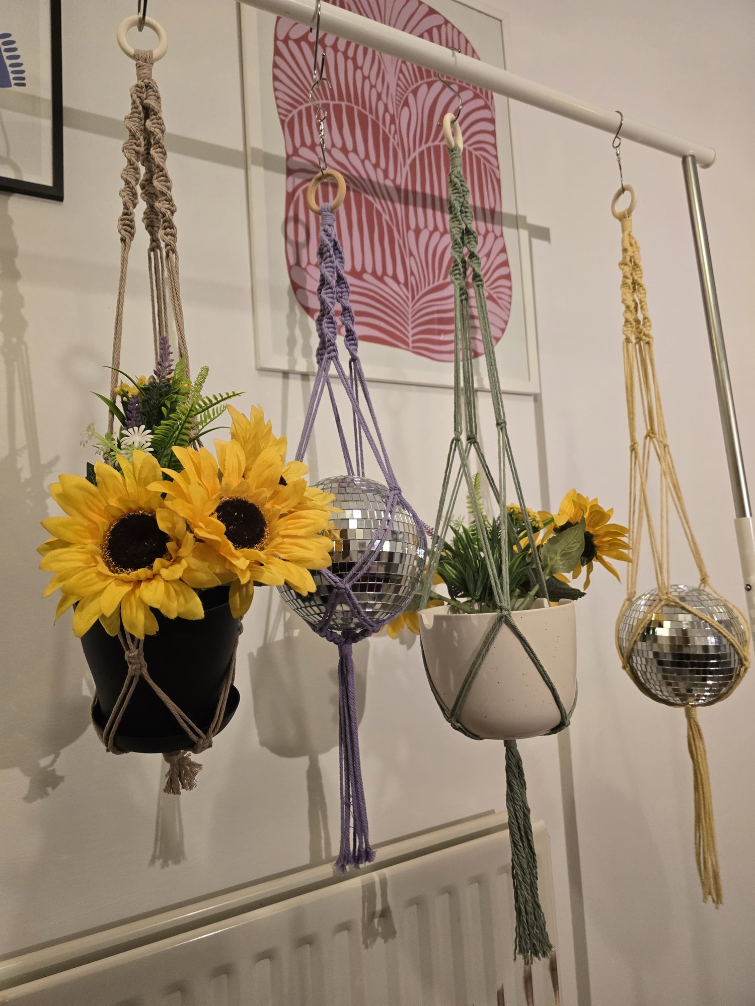 Learn the art of Macrame and explore your artistic crafty side in this delightful workshop experience! You'll be guided through the project, learning the art of macrame all the while making your very own macrame hanger for a plant or disco ball.